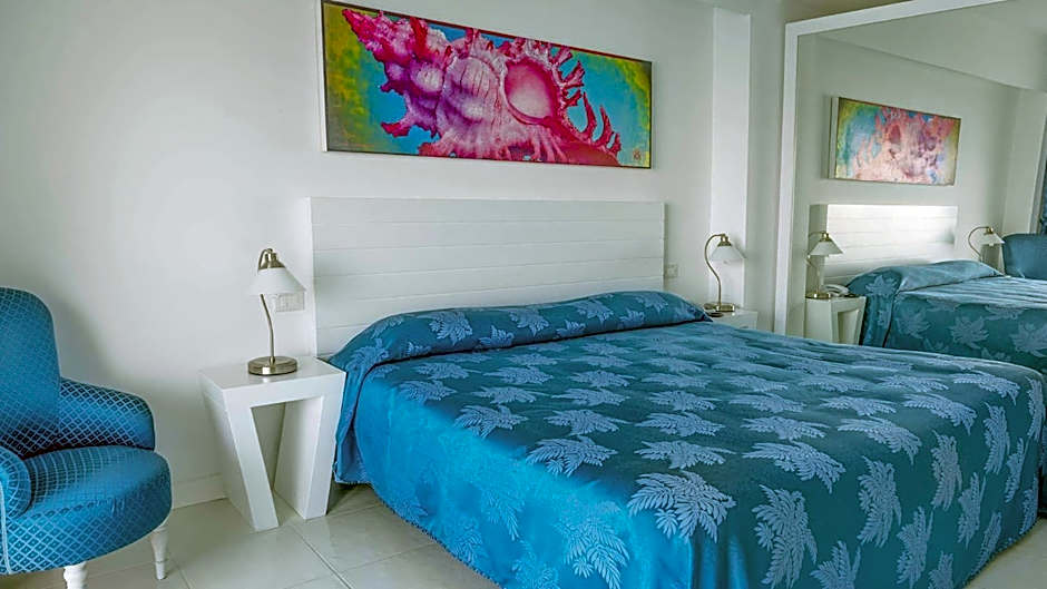 With a full sea-view balcony, this larger modern rooms features air conditioning, a flat-screen TV and mini-bar. The bathroom is complete with free toiletries.